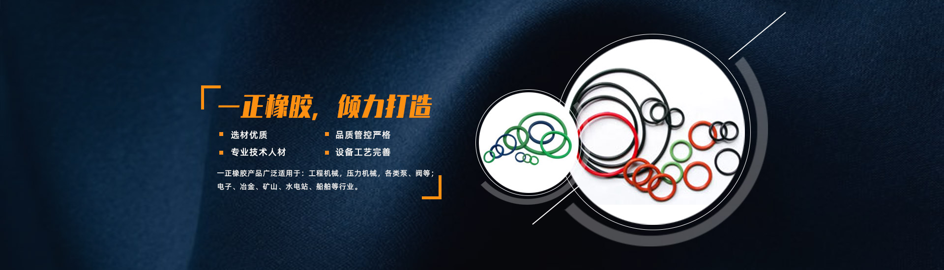 鐵嶺一正橡膠密封件有限公司產品廣泛適用于:工程機械,壓力機械,各類泵、閥等;電子、冶金、礦山、水電站、船舶等行業。